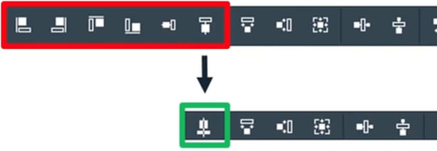 The commands for aligning objects in the ELECTRIX Editor have been optimised. In the WSCAD SUITE, there were six different buttons with which you could align the objects left, right, top, bottom, centre horizontally or centre vertically. In the ELECTRIX Editor, all six buttons have been combined into one. In addition, it no longer matters in which order you select the objects because you can now define the master object subsequently.